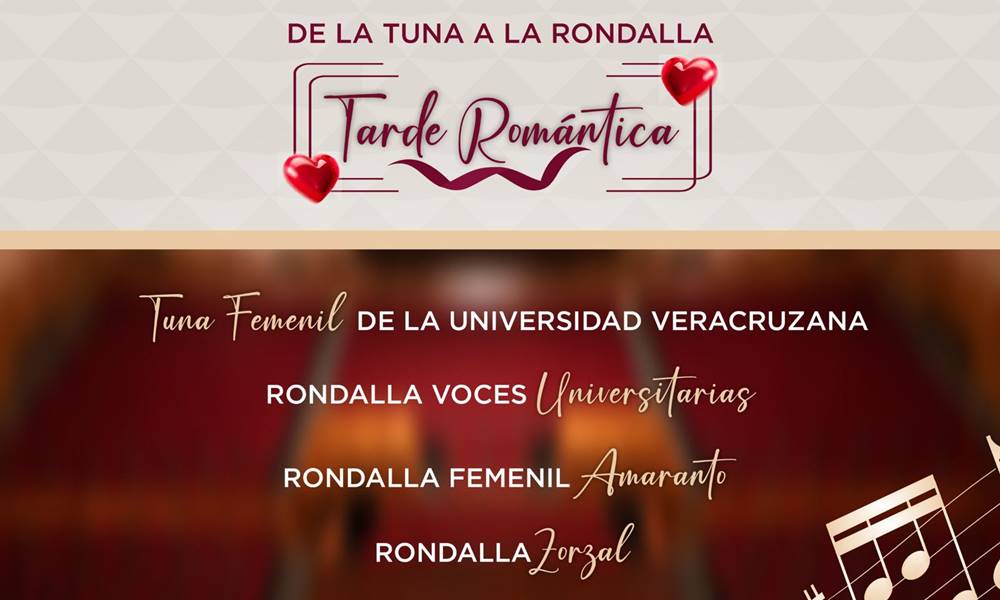 La Tuna Femenil de la Universidad Veracruzana (UV), la Rondalla Voces Universitarias, la Rondalla Femenil Amaranto y la Rondalla Zorzal darán muestra del talento xalapeño y universitario, con un concierto centrado en música romántica popular como baladas, boleros y serenatas, lo que permitirá apreciar la evolución de la música de cuerdas en el estado de Veracruz.