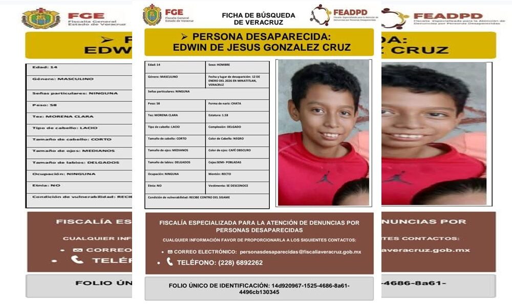 Redacción | El Piñero Veracruz.- Edwin de Jesús González Cruz, adolescente de 14 años originario de Coatzacoalcos, quien había sido reportado como no localizado, fue ubicado...