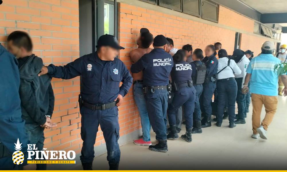 Elementos de la Agencia Estatal de Investigaciones y de la Policía Municipal detuvieron a siete personas identificadas como: J.C.L.C., J.M.D.C., M.H.H., J.R.C., J.C.H.H. y G.R.H., además del supuesto líder de iniciales E.C.G., quienes quedaron a disposición de la autoridad correspondiente para que se determine su situación jurídica.