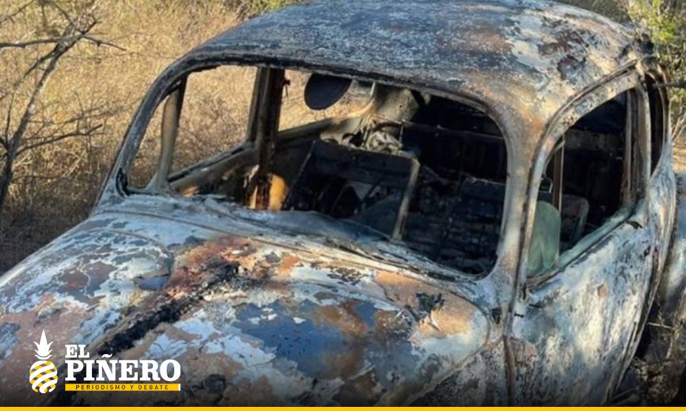 A unos metros del punto del hallazgo, autoridades localizaron un Volkswagen Sedán totalmente calcinado, lo que ha reforzado la línea de investigación que apunta a un ataque directo.