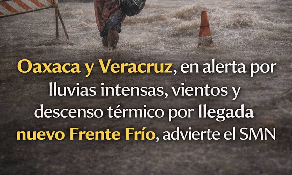 Oaxaca, México.- El Servicio Meteorológico Nacional (SMN) advirtió que Oaxaca y Veracruz enfrentarán condiciones meteorológicas de alto riesgo entre miércoles 4 y jueves 5 de febrero, debido al frente frío número 33 y su masa de aire polar, que provocarán lluvias muy fuertes a intensas, vientos peligrosos, oleaje elevado y un marcado descenso de temperaturas.