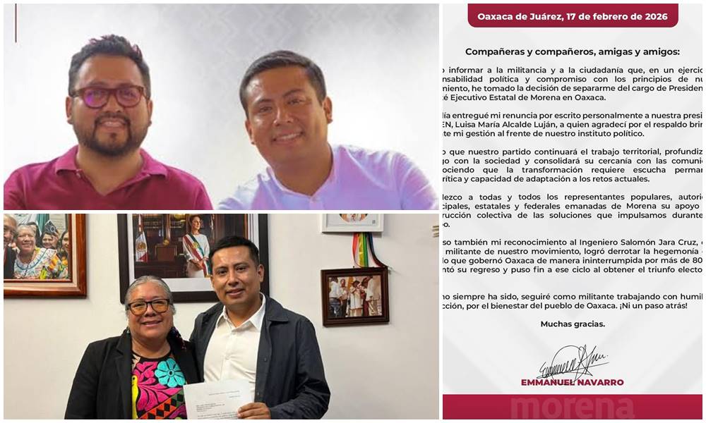 Navarro Jara dejó en claro que su salida del cargo no implica un alejamiento del proyecto político. “Como siempre ha sido, seguiré como militante trabajando con humildad y convicción, por el bienestar del pueblo de Oaxaca. ¡Ni un paso atrás!”, concluyó.