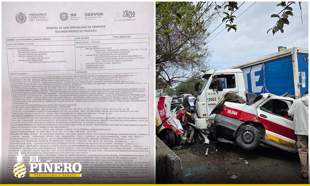 Familiares de dos taxistas gravemente lesionados en el accidente ocurrido el pasado viernes sobre la carretera federal 140 Veracruz–Xalapa solicitaron apoyo ciudadano y la intervención de autoridades, ante la crítica situación médica y económica que enfrentan.