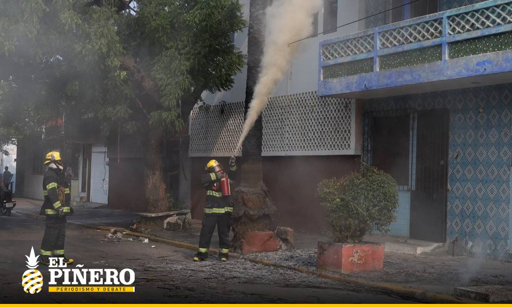 En cuestión de segundos, el fuego trepó por el tronco y alcanzó el cableado eléctrico, mientras el tendido de telefonía y televisión se retorcía bajo el calor. Una motocicleta Italika, estacionada a un costado, se convirtió en víctima colateral del incidente, el fuego la rozó, pero su dueño, en un acto desesperado, logró apartarla y sofocar las llamas antes de perderla por completo.
