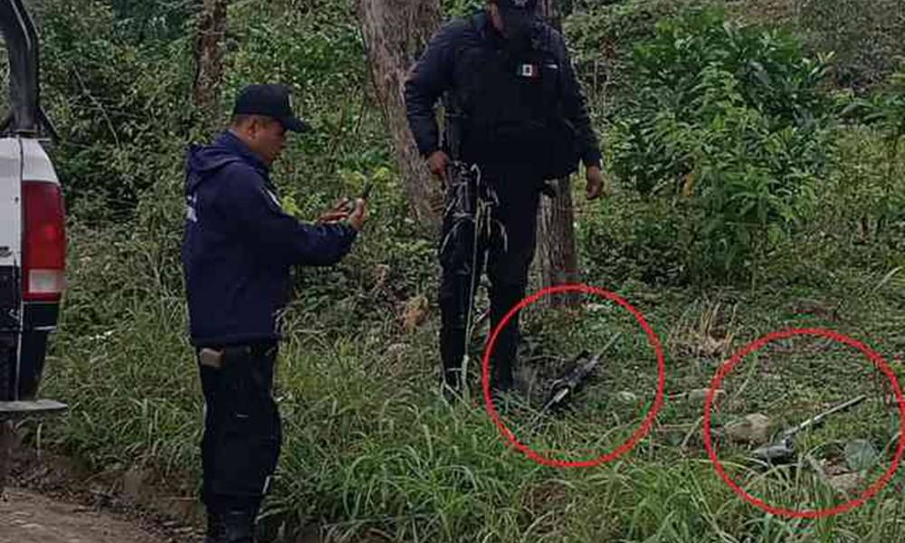 Pasadas las 13:00 horas del domingo primero de febrero, dos personas con vestimenta camuflada emprendieron la huida al notar la presencia de Policía Municipal, Guardia Nacional y Policía Estatal, abandonaron dos escopetas, calibre 12 y calibre 16.